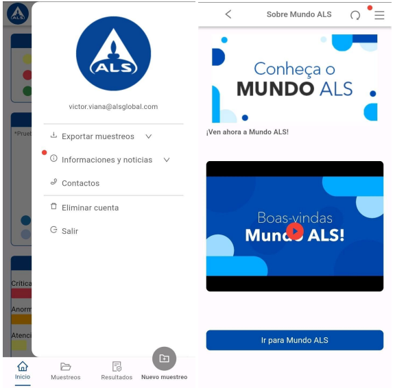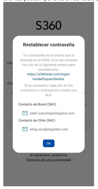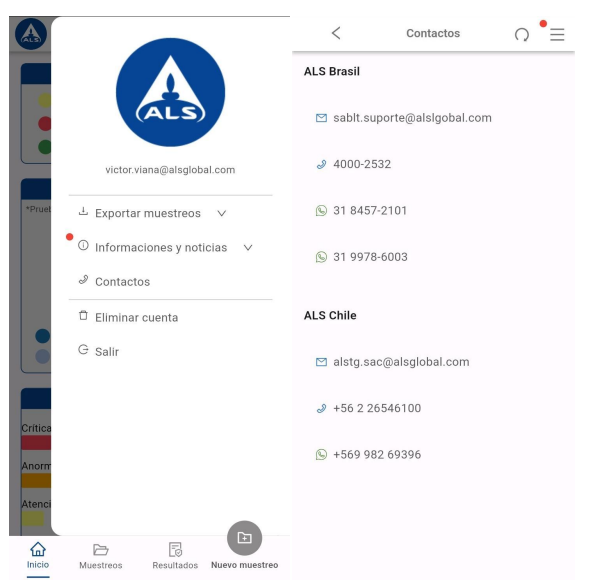 Para mejorar la comunicación entre ALS y usted, proporcionaremos una pantalla con los contactos de Brasil y Chile, dirigiéndole a la aplicación de correo electrónico del cliente, pantalla de llamada o WhatsApp.