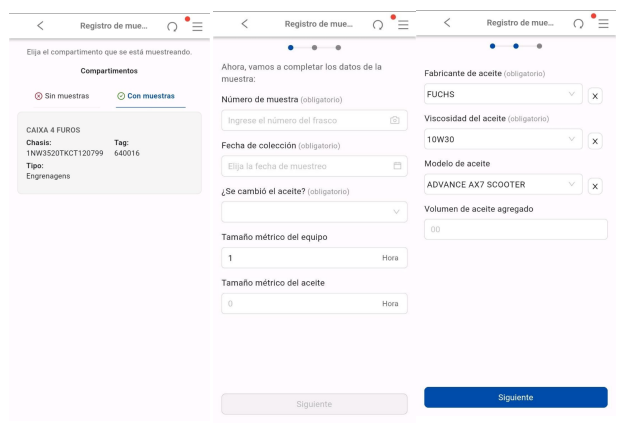 Para agilizar el registro de los muestreos, la aplicación recuperará los datos del muestreo anterior (fabricante del aceite, viscosidad del aceite, modelo de aceite, contador de horas).