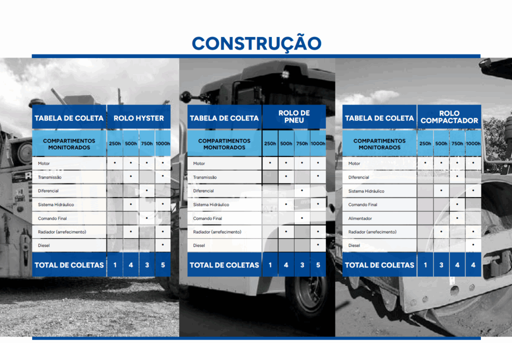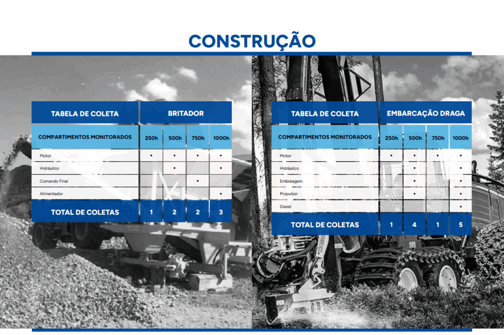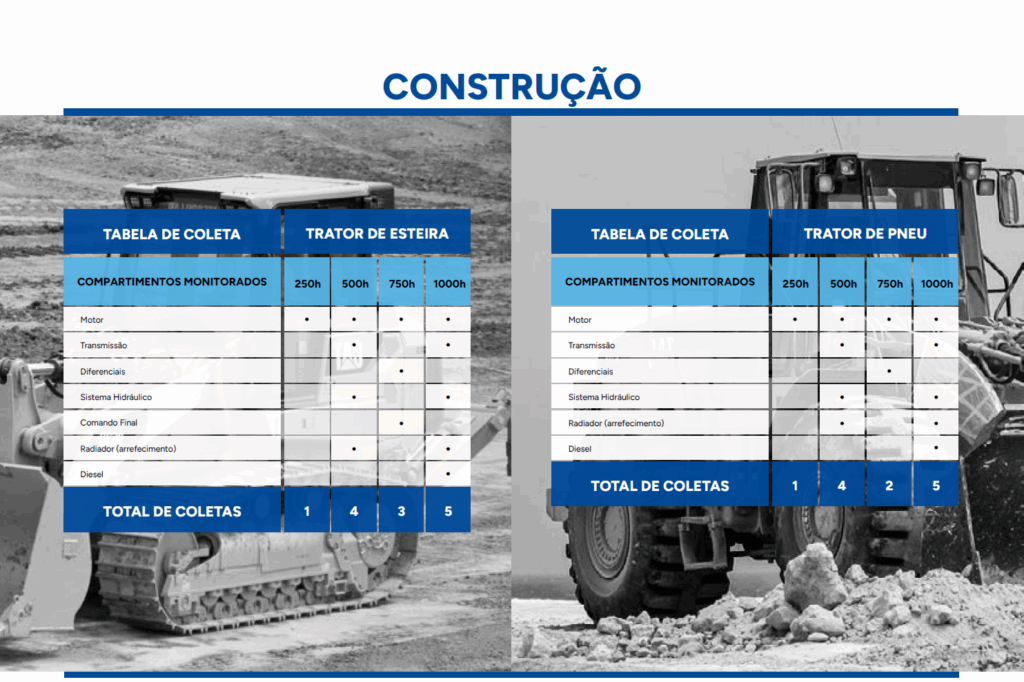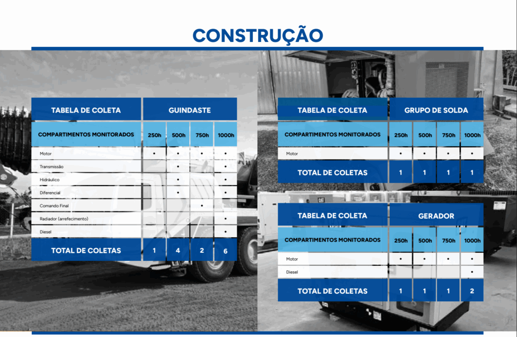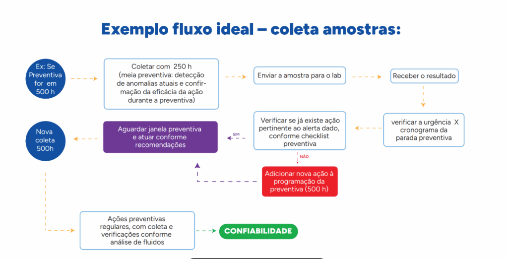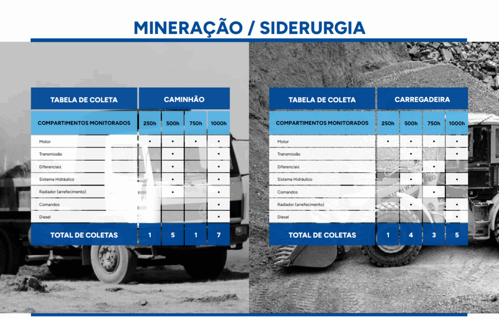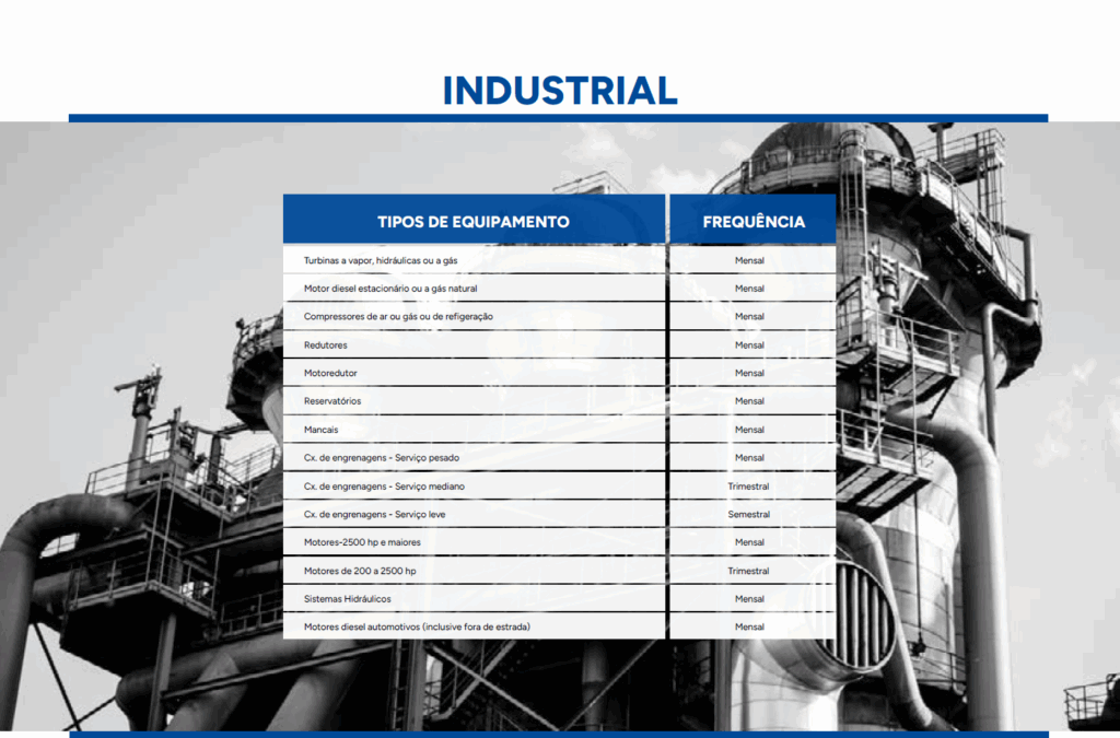 Você pode consultar outros equipamentos no manual do fabricante. Aqui na ALS, recomendamos sempre a coleta no tempo de meia preventiva, ou seja, antes do período de parar o equipamento, para que, caso a amostra traga sinais de algo a ser investigado, é possível fazer esta intervenção justamente no período sugerido pelo fabricante.