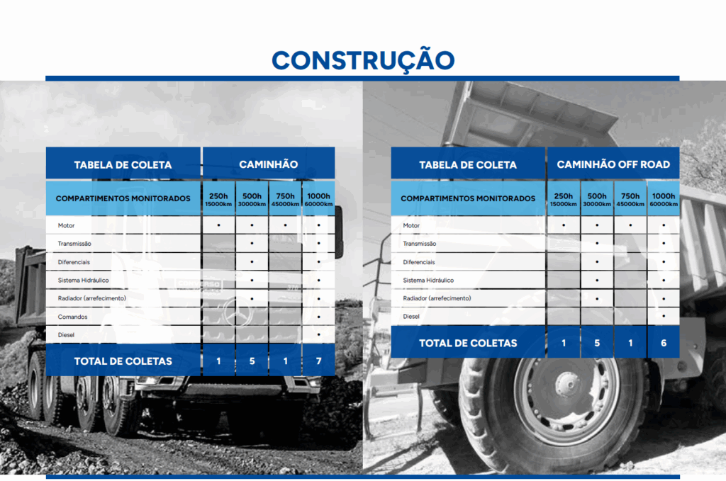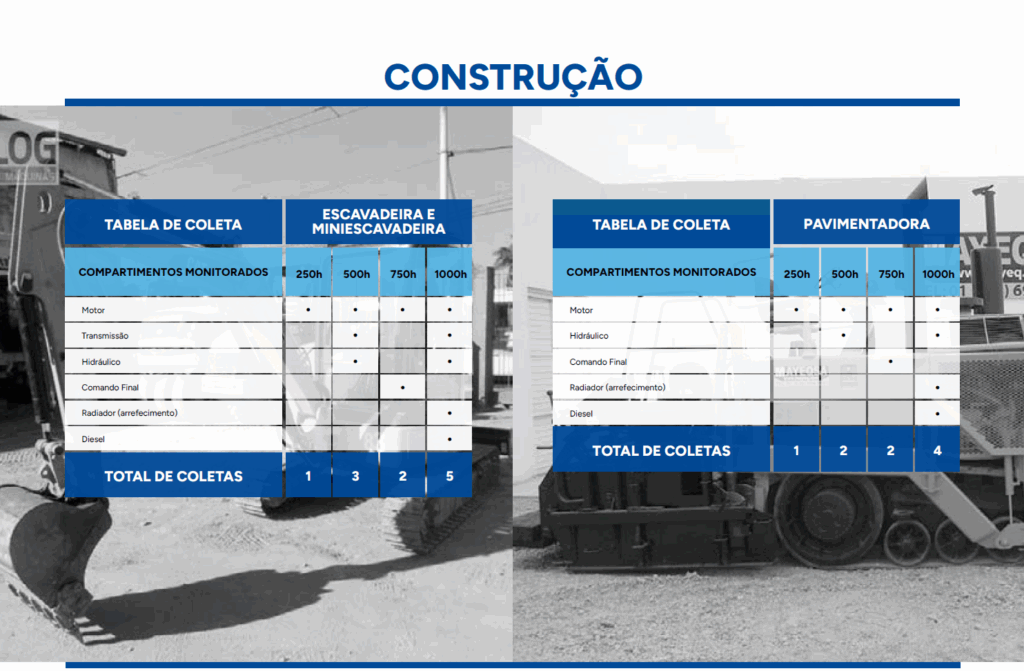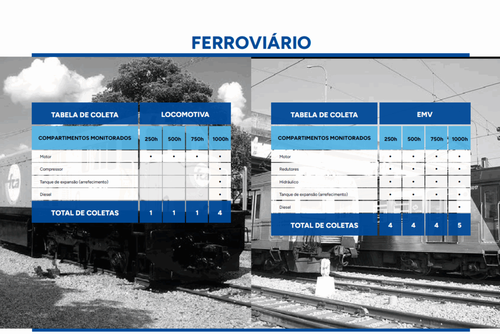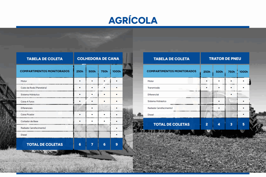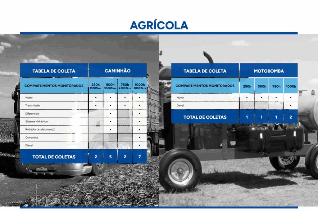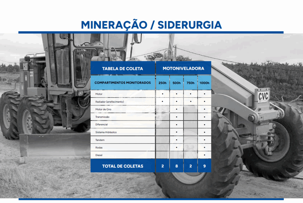 Você pode consultar outros equipamentos no manual do fabricante. Aqui na ALS, recomendamos sempre a coleta no tempo de meia preventiva, ou seja, antes do período de parar o equipamento, para que, caso a amostra traga sinais de algo a ser investigado, é possível fazer esta intervenção justamente no período sugerido pelo fabricante.